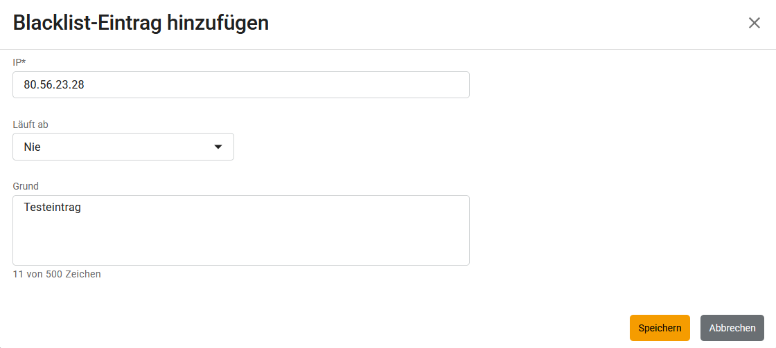 IPv4-Adressen, die auf der Blacklist stehen, können manuell in die Whitelist eingetragen werden und werden damit automatisch aus der Blacklist entfernt. Es ist auch der umgekehrte Fall möglich, also das IPv4-Adressen, die auf der Whitelist stehen, manuell in die Blacklist eingetragen werden und damit automatisch aus der Whitelist entfernt werden.